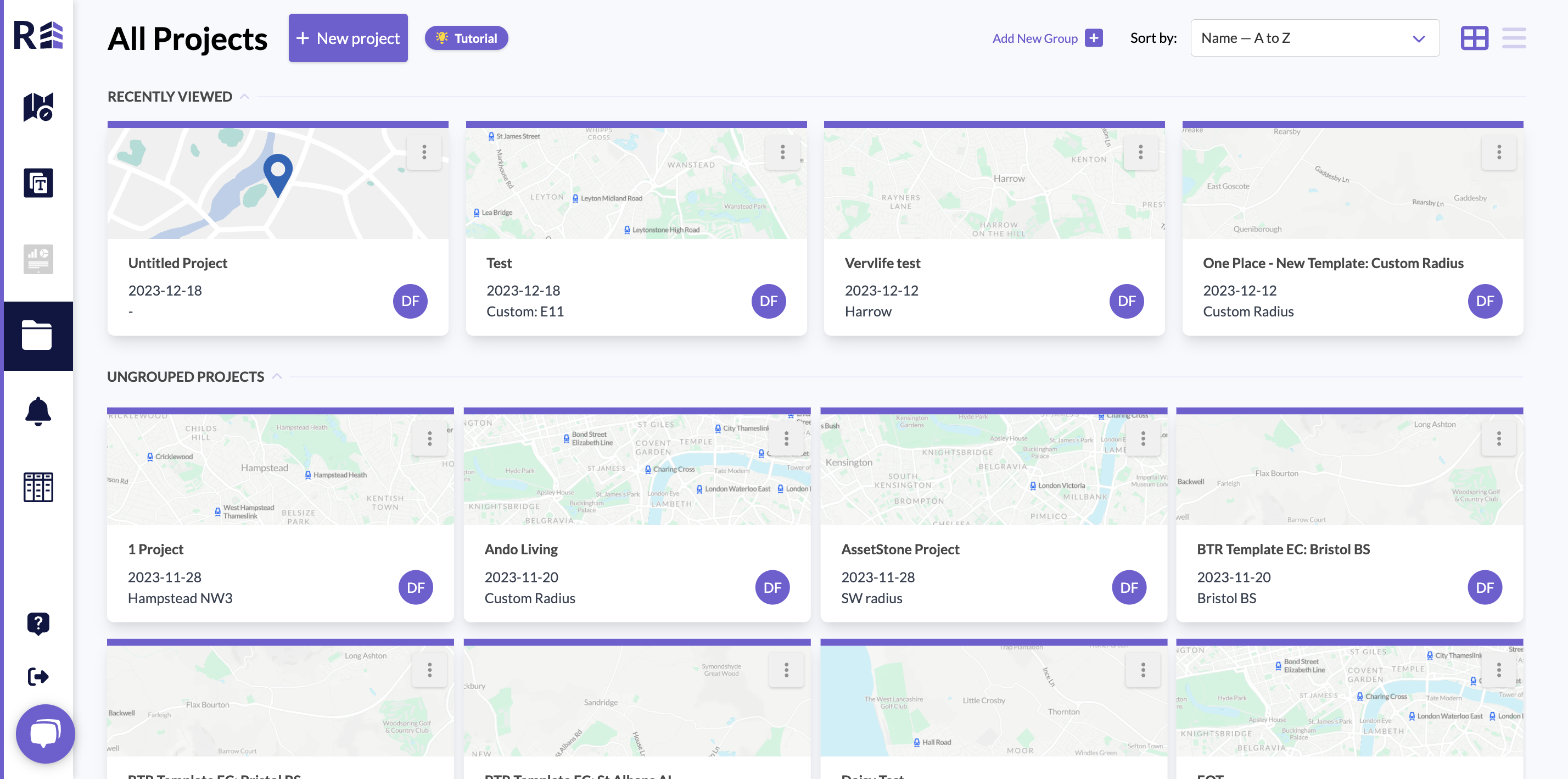 All projects can be found in the navigation panel on the far left hand side of the platform, in the folder icon.