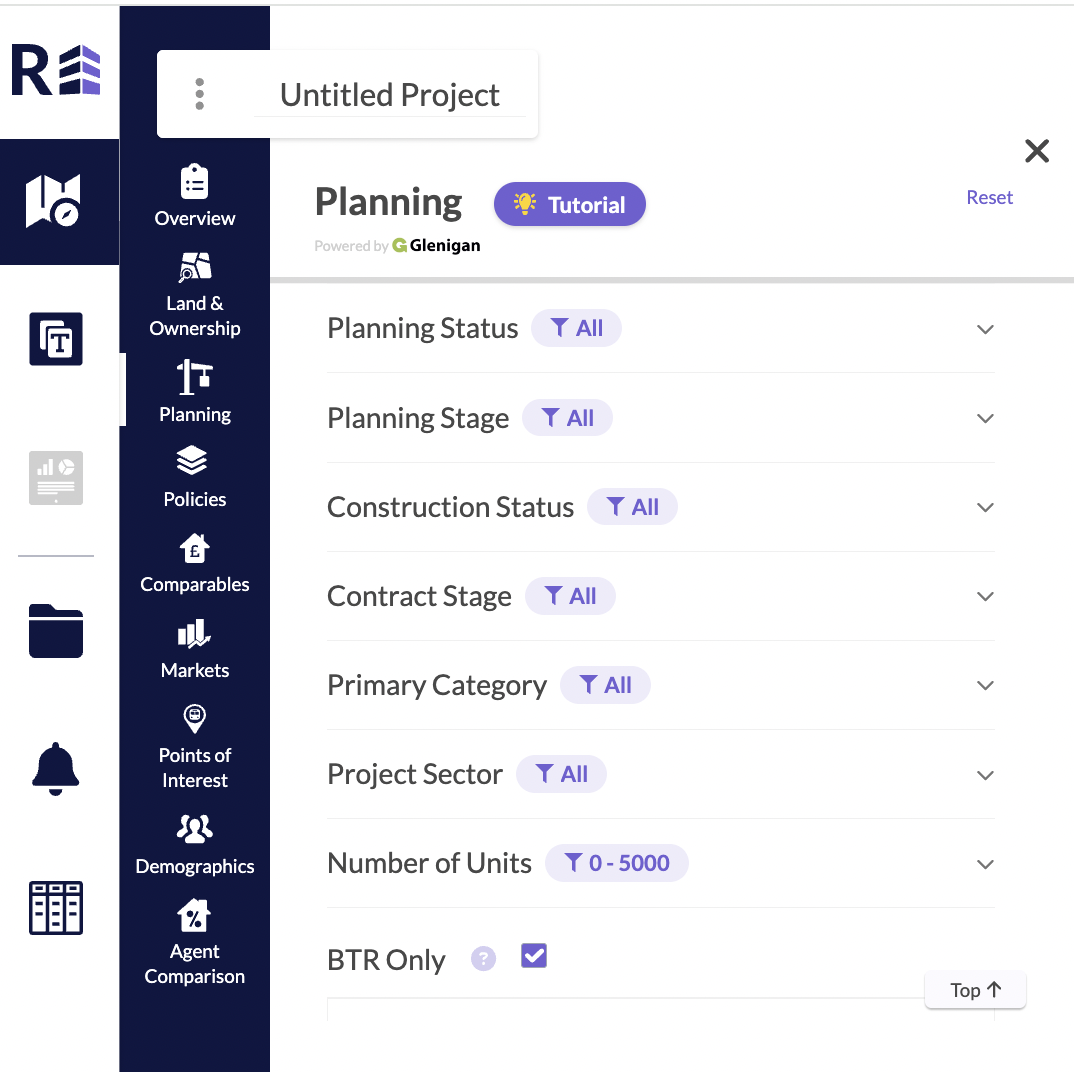 Within the planning, markets and comparables sections of the platform, there is a check box available to refine your search down to BTR only.